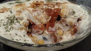 Chickpeas, Pita bread, Yogurt are the three main ingredients of Fatteh. Fatteh is a traditional Lebanese plate, it can be served either as a main dish or a side dish. My son-in-law likes it very much, then again he is a great fan of my cooking :). One time he had it with my daughter at a nice restaurant in Down Town Beirut, among some other orders. Apparently my daughter said that she preferred my Fatteh, and her husband replied :” well, let’s wait and see”. After a few days I prepared it and I had my daughter and her husband for dinner. After eating my daughter was waiting for her husband to react , and after he finishes his plate he said just one word”Yummy! This is Fatteh”.