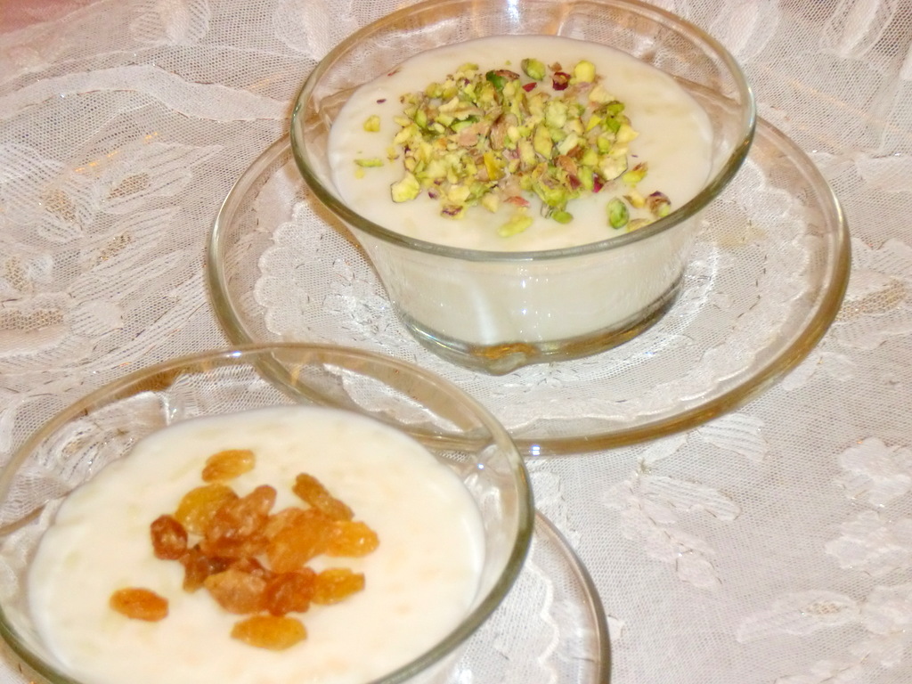 - Put the mixture in small cups and when its cold you can decorate them with pistachios or dried raisins