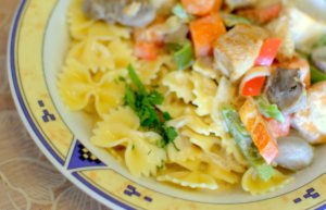 In my pantry there is always spaghetti because it is appreciated on our table. Yesterday my son had three of his friends at home and after studying all day, they felt hungry. Having not prepared enough food for everyone and with very short notice, I automatically decided to prepare spaghetti. Me being who I am, I wasn’t satisfied with making just plain old pasta; luckily I had frozen shrimps in the freezer and I came up this dish with a very large bowl of salad and some appetizers. There were no leftovers, so I think it turned out alright. Try it yourself 🙂
