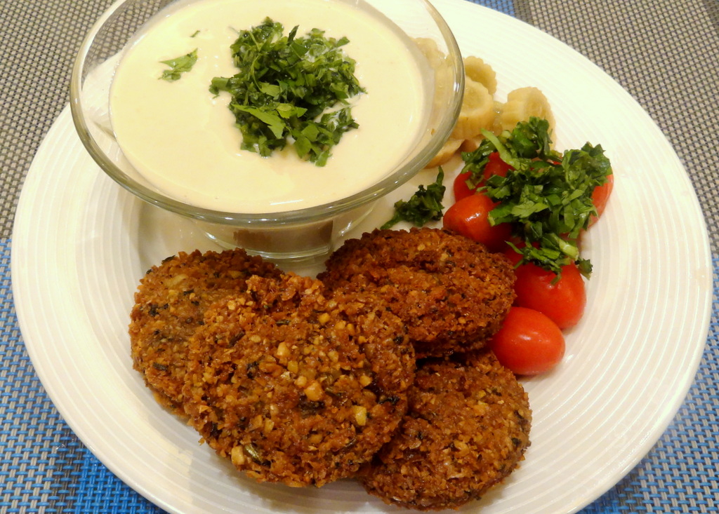 - Fry the kibbe balls half way, for a few minutes only, then place them on a kitchen towel to absorb the excess oil and keep aside